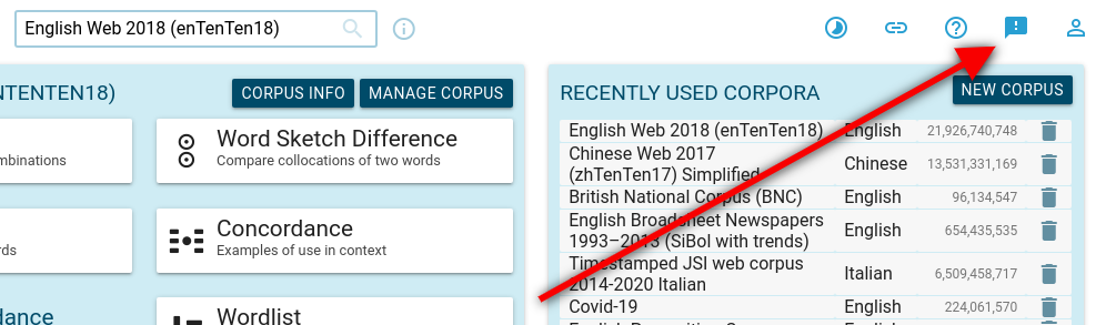 Please use the feedback icon in Sketch Engine for any bugs or errors or questions about a particular Sketch Engine screen.