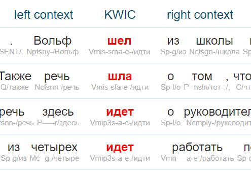 A complete set of Sketch Engine tools is available to work with the Russian corpus to generate: