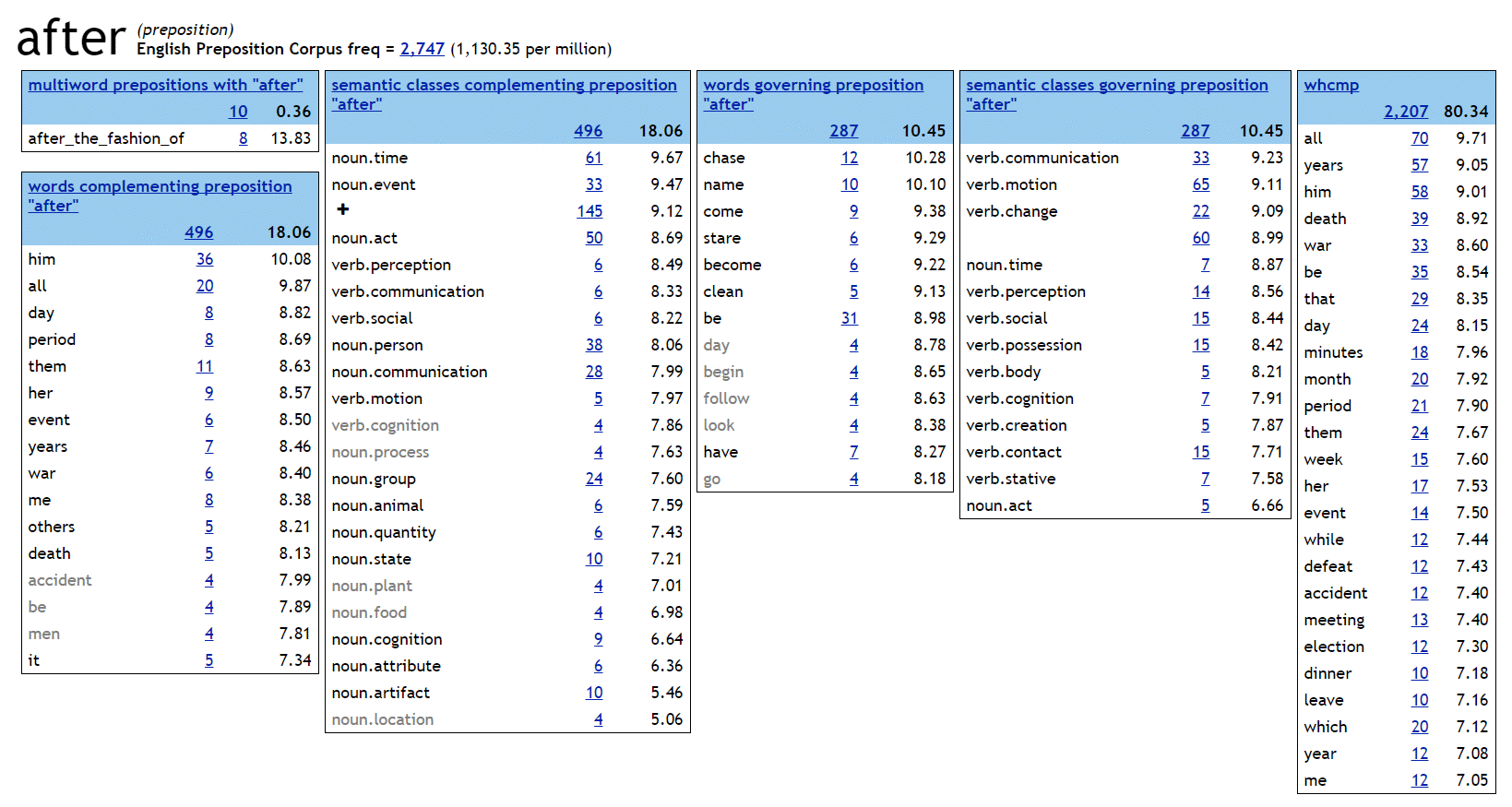 Our new unique English Preposition Corpus uncovers how prepositions behave and what senses they have. The corpus features special annotation for the sense of the preposition and also for the semantic class of the word that precedes and follows the preposition. The user can