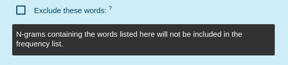 The result can be limited by minimum and maximum frequency. By default, low-frequency n-grams are excluded. Use the advanced tab to change this.