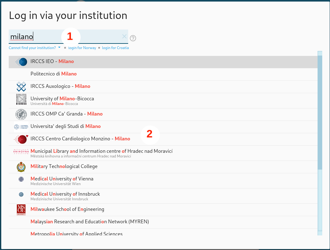 Your institution has to be a member of one of the following identity federations to use SSO: