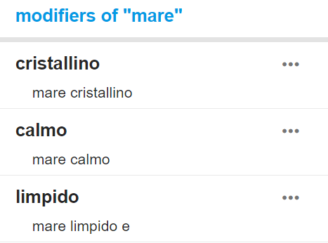 Sketch Engine can now find more and better collocations in Italian. The collocation search (the word sketch feature) identifies automatically collocations and patterns specific for Italian.